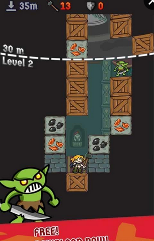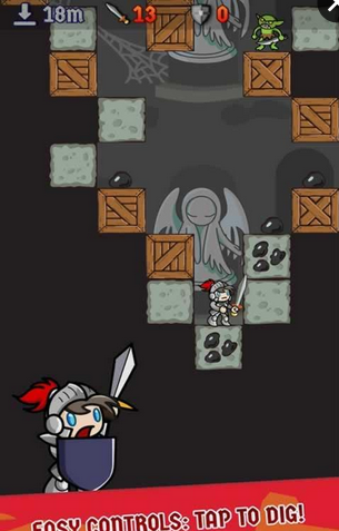 《崩溃的地牢 Crash Dungeon》是一款手指休闲游戏。游戏中,你需要控制骑士不断地向地下深处探险,通过手指疯狂点击屏幕来打通脚下的路,有的石块需要连续的点击才能击碎。
