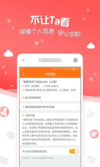 前程无忧为7300万求职者提供人力资源服务,我们拥有海量优质职位,你可以根据个人需求进行搜索与投递,并支持多维度筛选,精确找到心仪职位。并能实时更新简历,呈现自己最精彩的一面,为奔波在求职路上的你提供贴身帮助。