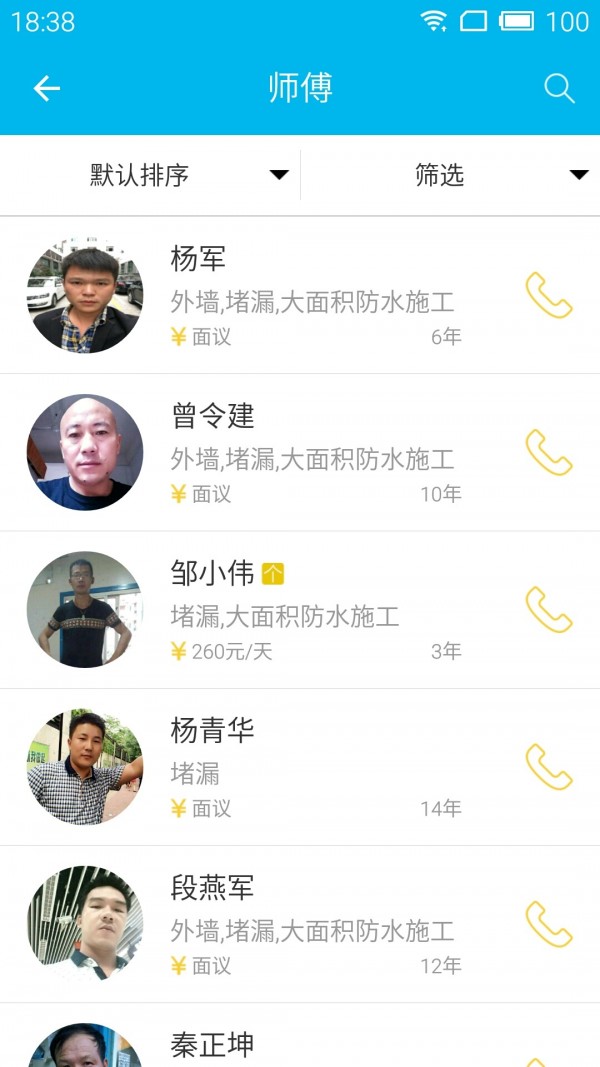 宝师傅是一款手机求职招聘服务软件,主要针对于有手艺的师傅服务,让他们能都快速找到好工作,给建筑服务业带来帮助,项目在手,需要宝师傅,第一时间找到离您最近、最适合的防水师傅。