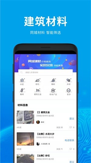 app是一个同城建筑工程行业信息整合平台。app提供招聘、设备租赁、建筑材料交易等功能,实现建筑工程行业闲置资源共享,同城、共享、真实、高效。