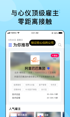 app是面向全行业的求职招聘应用,app合作的企业多,求职者能便捷搜索查找心仪公司和岗位,同时也帮企业高效招人。