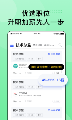 app是集合了知名企业和高端人才为一体的超级招聘平台,app可满足各行各业知名企业的招聘需求,大数据智能匹配高薪职位,百万职业顾问帮助求职者快速入职高薪职位。