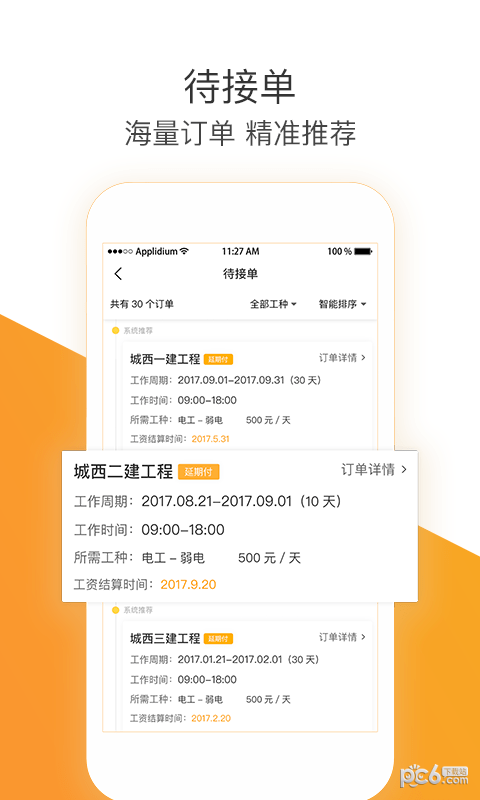 1.随时随地快速查看用工需求,海量工程实时接单;