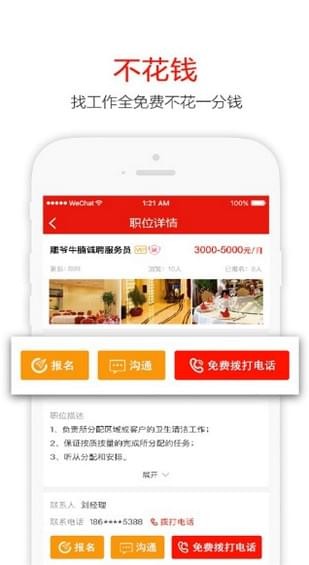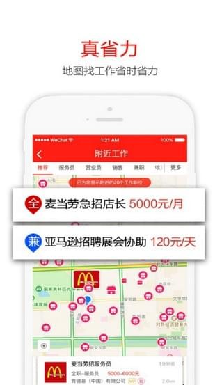 2、附近工作匹配:系统自动定位您的当前位置,并可按您的需求,找到周围1-5公里内的职位信息;