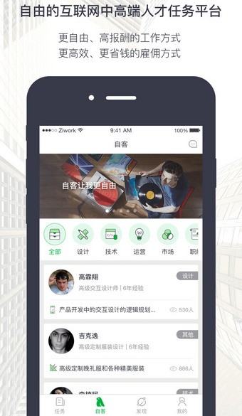 个人和专家可以在自客平台上获取优质的兼职任务或者工作机会,