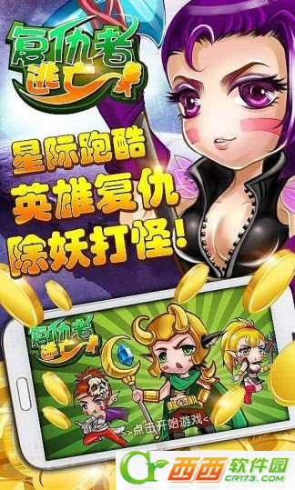 复仇者逃亡是一款将星际跑酷与英雄复仇、射击、除妖打怪相结合的精品休闲游戏。玩家可以选择英雄角色、升级装备,攻击、跳跃、连跳、爆发,驰骋于浩瀚的星际,消灭怪物、跳过鸿沟、闪避地刺、收集钻石,一往无前最终复仇成功。