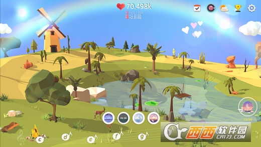 绿洲等级提升时地形会发生改变,还会出现树木和动物之类的新要素。通过音符演奏,能和游戏里的各种对象一起互动。可以改变天气,下雨或下雪;也可以改变时间,变成傍晚或黎明。