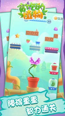 贪吃的植物以食肉植物盆栽为游戏背景,你知道有点植物不仅能捕食昆虫还能吃肉,没错就是这么一盆食人花,开始还很弱小只能吃虫子之类的,随着不断的长大开始向上找东西吃!