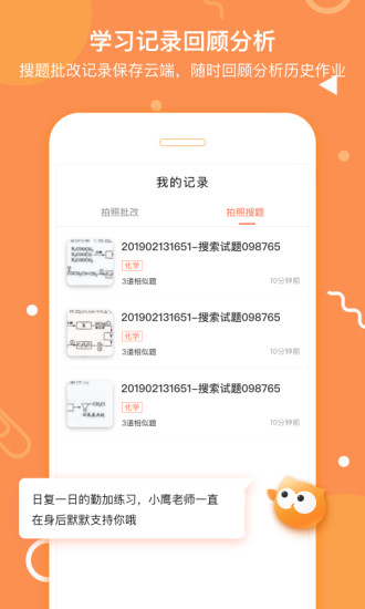 学习记录回顾分析:搜题批改记录保存云端,随时回顾分析历史作业。