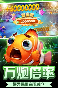 《万炮金鲨捕鱼》是全新概念真人实时联机还原街机竞技捕鱼游戏!原味经典街机移植,全新关卡玩法,更全面的捕鱼内容,下分,爆机爽不停!各种火爆炮场,全民竞技赛,让玩家快速成长为捕鱼达人!千炮、万炮、技能炮应有尽有,等您来挑战!《万炮金鲨捕鱼》,火力全开,震撼来袭!奖品丰富,多人联网在线竞技;多种炮场不同场景,画面酷炫,尽享捕捉鱼快感;一起来体验深海捕鱼的欢乐刺激氛围,跟我来挑战全国捕鱼达人!