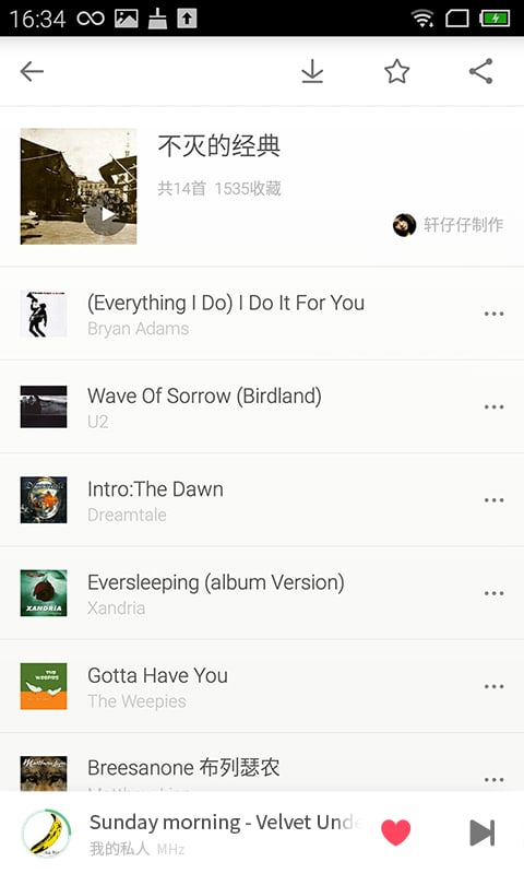 豆瓣电台出自国内最大的书籍、电影、音乐交流社区豆瓣之手,品质自然不在话下,简洁的界面,轻松的操作,喜欢的歌曲点一下标记,不喜欢的歌曲点一下删除,来个几次,后台机器人自然能找到您的音乐风格,从而推荐对您胃口的音乐,真的是非常不错,强烈推荐!