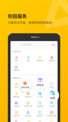 奖助申请、第二课堂、成绩课表、请假,丰富贴心的校园应用服务,伴随你的大学成长。