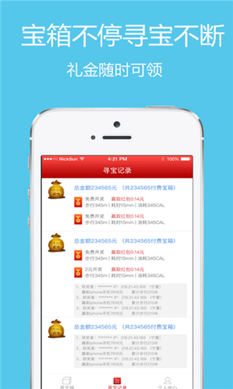 app是一款运动赚钱手机软件,用户通过app随时在线寻找宝箱,不仅可以开启巨额礼金,轻松赚钱,还能利用碎片时间锻炼身体,一举两得。