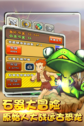 《石器英雄》是一款以石器时代为蓝本打造的放置类挂机休闲手机游戏,由厦门青瓷数码研发运营。玩家可以通过点击野人、怪兽等石器时代元素进行游戏,也可以挂机等待收集金币。在石器英雄手游世界中,除了一开始的打怪闯关收集金币,还会逐渐开启诸如技能、转生等新功能,随着金币产出的成倍增加,伤害与财富也会以兆亿进行计算,石器英雄安卓版下载给你十足爽快感!
