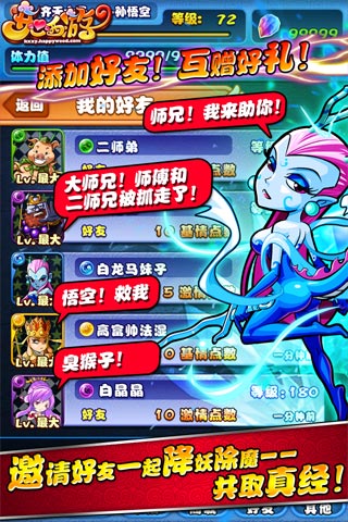 开心西游手游是一款西游题材三消类手机游戏,以神奇的6色方块消除作为降妖方法,男女老少都能轻松上手;收伏超过500个神仙和妖怪助你共同除魔,炫酷的战斗场面让你大呼过瘾;轻量级的好友系统,兄弟姐妹组队杀敌,共取真经。简单励志的仙妖养成系统,把小妖培养成降魔领袖的感觉只在这里淋漓体验,2D与3D的奇幻融合,《开心西游》让你的取经降魔之路无以伦比。开心西游安卓版下载奉上。