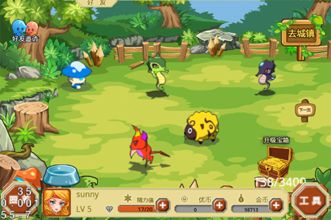 萌龙大乱斗无限钻石版是一款充满趣味与挑战的模拟经营类手游,游戏画面精美,采用q版呆萌的小恐龙形象,让人爱不释手。玩家可以在游戏中建造梦幻的恐龙天堂,收集、养成并训练各种属性的萌龙,组建强大的龙战队参与竞技对战。此版本已破解内购模式,玩家可享受无限钻石和金币的乐趣,无需担心资源短缺问题。玩法解析1.