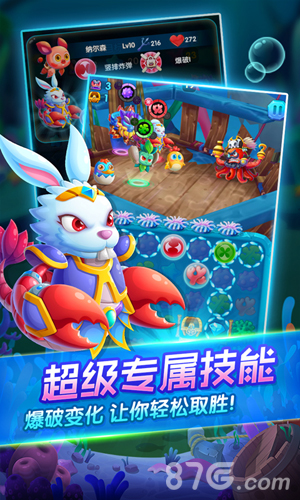 超好玩的3D对战消除手游《深海奇缘消消乐》来啦~现在玩家们已经可以体验深海奇缘消消乐安卓版本咯,来自指尖的消除大乐趣,你不可错过!游戏讲述的是主人公卡西嗒热衷于冒险,听精灵前辈讲述深海奇缘后,蠢蠢欲动准备外出闯荡,追溯古老的传说。卡西嗒既好奇又兴奋,却不知危机四伏,直到它遇上了贪婪的寻宝恶霸……游戏中玩家可以感受到绚丽的画面,战斗精彩有趣,赶紧的下载一个,一起开始大冒险吧!