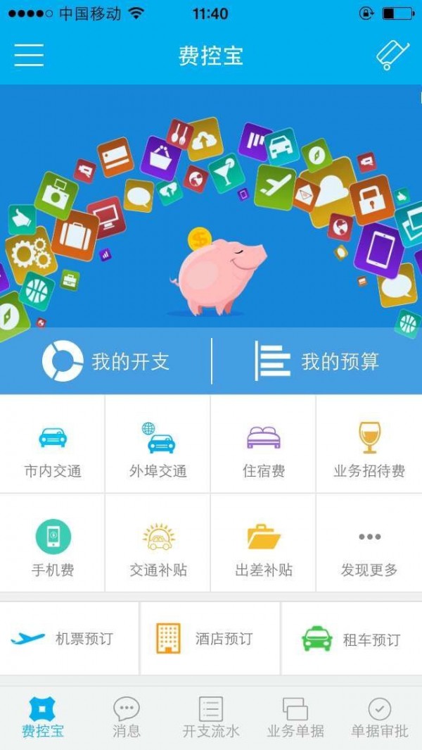 费控宝是一款手机记账办公软件,费控宝为企业客户提供一站式费控解决方案的企业应用系统,其核心使命是帮助客户降低商旅、采购成本和日常运营费用,并通过持续的技术创新不断优化用户体验。