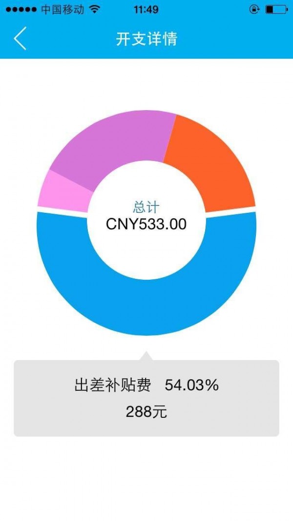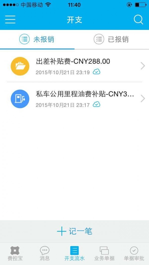 2)、点击“未报销”、“已报销”查看相应的开支费用项目;