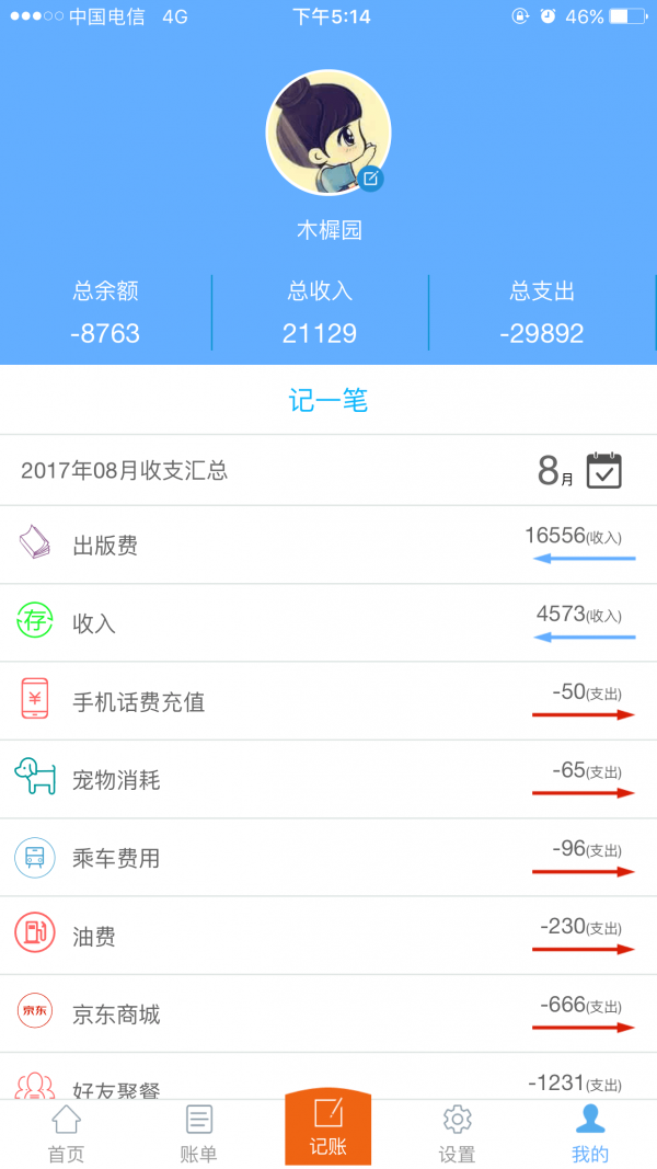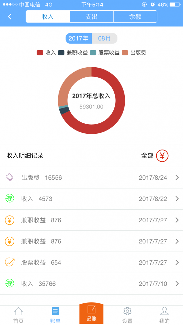 收支数据:详细的收支数据明细,生动的统计分析图表,帮助用户快速分析收支情况,辅助理财,不做剁手党。