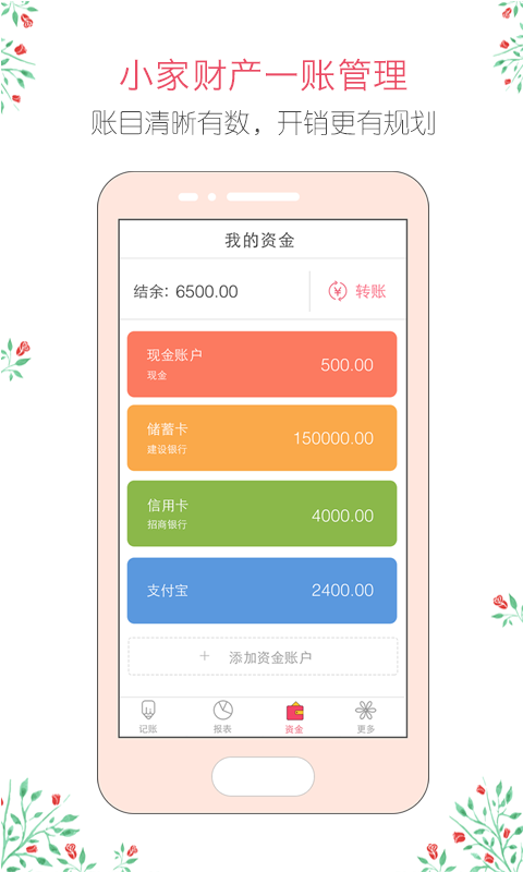 1、实时查询预算资产变化情况,快速检测超支和各类消费情况,让您月月有结余,脱离月光族