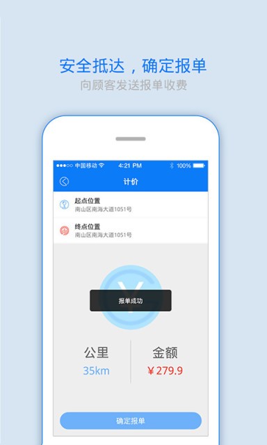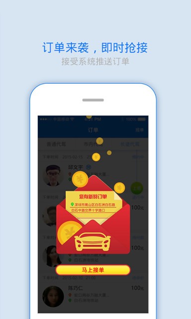 是一款基于LBS+020的APP软件,它采用最新的移动定位技术实现线上下单、线下服务,具有不受时间和地点限制、价格透明等优势,通过共享软件平台、资讯、订单和客户,能有效快速对订单进行最便捷的配对,使司机在最短的时间为您提供快捷的服务。