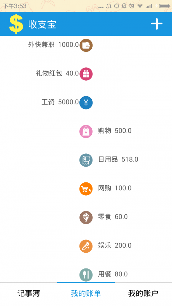 不管你是白领还是蓝领,只要使用收支宝,帮你轻易打理生意流水账,准确记录开支事项!理财赚钱全搞定!天天记账,随手一点,轻松消除穷癌,简便、快速的记录每天花销,帮助用户培养科学的消费观。收入/支出统计与周期性的账单分析,前端记账过程极简,后端财务分析功能强大、最终培养用户科学的消费与生活观念,让记账成为一种生活方式。