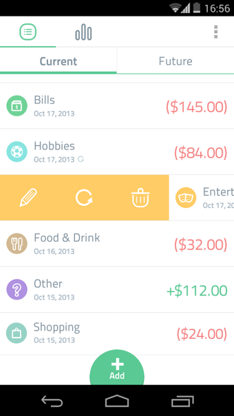 Spendee记账采用了最新的扁平化设计,明亮的配色搭配简洁清爽的图标和字体,以及便捷的动态信息图表和走势图,让财务收支一目了然。和同类产品相比,Spendee在财务分析上对于想改变开销习惯的人会更有效。同时,Spendee容易上手,水平放置和滑块等细节体验也做得很好。注:免费版本有广告,但不影响使用。