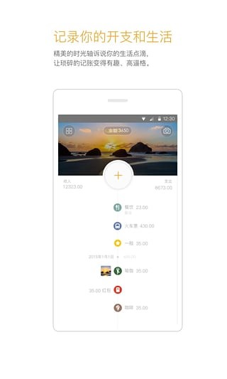 1、首家时间轴记账法:用时间轴组织账目,这样的结构给设计提供了更灵活的空间,可以后续轻松对接有用的“轻理财服务”。
