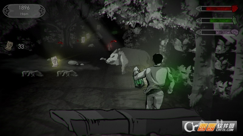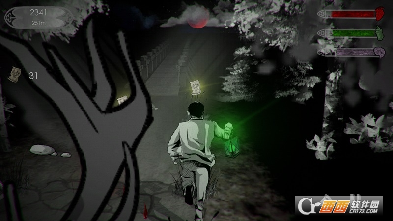 他的逃跑是讲述克苏鲁的召唤的作者在他的作品被具现化后,为了阻止世界被毁灭,而展开无尽狂奔,无尽的黑夜笼罩,玩家要操作Lovecraft躲开邪魔生物,并收集死灵之书来将它们重新封印。