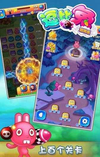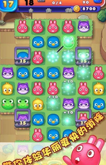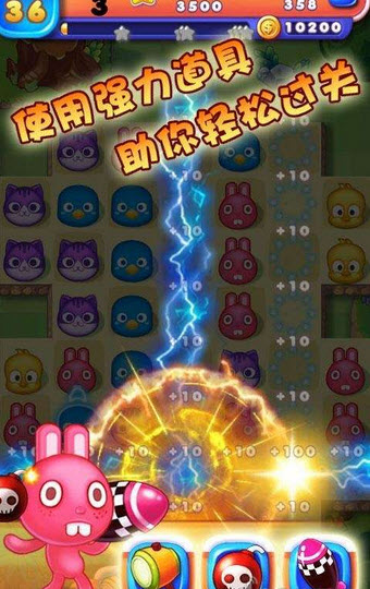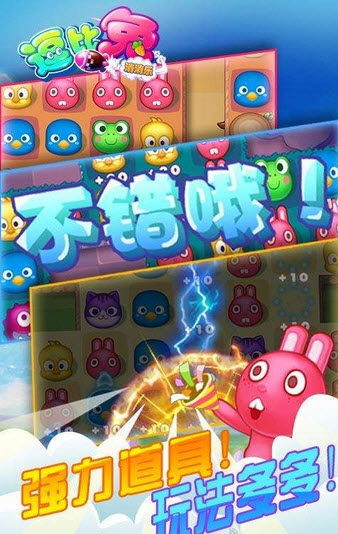《逗比兔消消乐》超萌超贱的逗比兔来解救小动物们了,时下最流行的连线消除游戏,连的越多得分越高,还有多种道具任你选择。超萌的画风,炫酷的特效,连得手指停不下来啊。