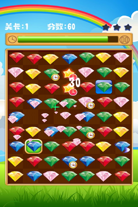 一款类似消灭类游戏,开心宝石消消碰是一款很锻炼脑力的消除类益智休闲游戏,曾在iphone平台上创造下载量破百万的辉煌,现在android版的风暴已经来袭。你的任务是将同颜色连接在一起的宝石消除,点击两个或更多相同的宝石可以消除它们即可。