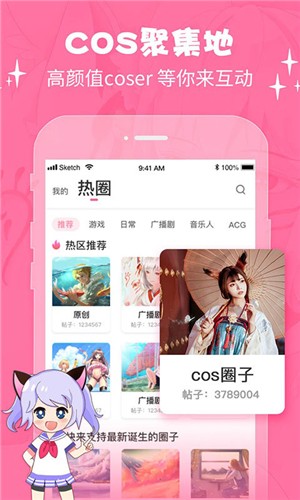 app是一款二次元交流客户端应用,软件让给热爱cosplay的用户可以通过图文、录音等多种形式发帖交流,app让喜欢二次元的你可以找到专属兴趣圈子。