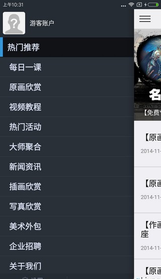 :关注你的梦想和成长。最新大神作品,经典教程案列,急速招聘信息!内容均为转载,版权归作者所有。教画画,只教新手入门级课程。产品系列叫:从零开始学画画。很适合小白新人学习~因为是录播课程,所以可以反复看,上传的作业老师会打分。提问,笔记功能做的很好,用起来很方便。要说最大的亮点是.....老师很逗,课程很好玩,一套课才300块~希望对你有用~