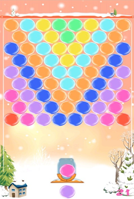 雪中的泡泡,非常可爱的下雪背景,让你感受打泡泡的乐趣。只要让3个及以上相同颜色的泡泡一起,泡泡就会被打下来。