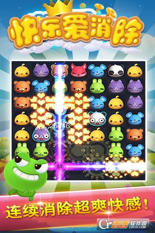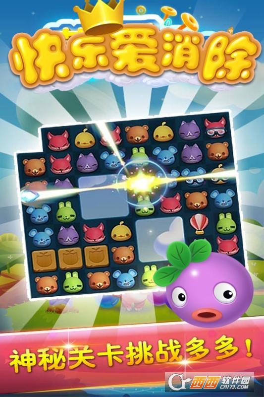 《快乐爱消除》是一款休闲类萌宠消除游戏,萌宠爱消除游戏不但以超萌的小动物作为游戏的主角,还加入了特殊元素,游戏主角们表情生动活泼,宠物养成等新功能设计使整款游戏妙趣横生,游戏还拥有无尽水果成长模式这款小游戏带来了强大的可玩性。你还在等什么呢,快来邀上你的小伙伴一起玩吧!