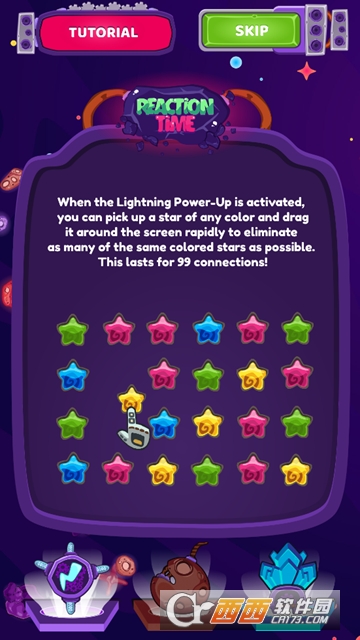 想要升级,您需要不停地配对来消除相同颜色的星星。只要点击一个星星并按着不放,将它拖曳到另一个相同颜色的星星上,便可以将其消掉。持续地消除相同颜色的星星,直到屏幕上方计时器的时间到为止。一但您挑战成功,即取得上半场的胜利,须赢得两个半场才能升级(屏幕上会显示)。快完成挑战来进入下一个关卡吧!