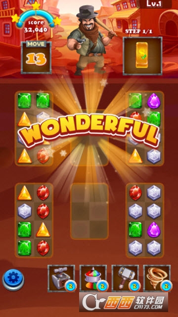 游戏的玩法非常的经典采用了三消消除玩法,有众多神秘和丰富多彩的图形,海量的西部图形图鉴等你来收集和体验,多达100多关挑战给玩家丰富的趣味!