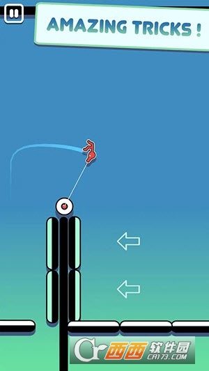 《摆荡火柴人》是由Madbox出品的一款益智休闲游戏,点击屏幕即可控制火柴人勾住最近的锚点进行摆荡,顺利抵达终点即可完成目标解锁下一个关卡。游戏中每个关卡充满了各式各样有趣的障碍物,使用你的钩子,发挥出你的势力!