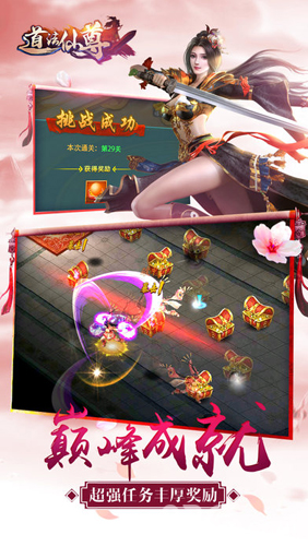 道法仙尊是一款竞技类型的玄幻修仙手游,根据同名小说改编,游戏体验小说原汁原味的角色,酷炫技能效果,让玩家体验到真人互动修仙的第一感觉。战斗!仙界斗法问鼎华山,仙魔乱斗勇者胜轻松!挂机拿,Boss掉,极品神装天材地宝交互!双修生子,桃园结义,温泉混浴、按摩拿豪礼!护送打劫,还能半路打劫!各种新奇有趣的玩法,乐不停!更多玩法下载道法仙尊亲身体验哦!