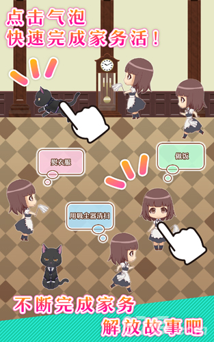 《执事马里斯与洋馆之主安卓版》是一款扑家工作室汉化的猫咪放置养成游戏,洋馆之主是一只身穿西装会说话的猫咪,可爱的少女成「由衣」,莫名成了某位有钱人的女仆,你所扮演的就是在它手下工作的女仆,听从他的指示来对洋馆进行打扫吧!通过在洋馆内工作,剧情就会得到发展,由衣与黑猫马里斯的关系也会发生变化,故事到底会往什么方向发展,赶紧来体验一下吧!