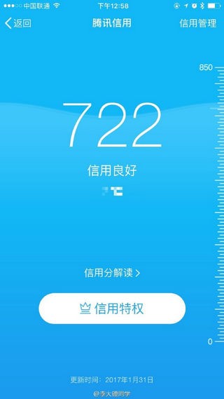 是腾讯征信推出的个人征信管理平台,用信用分来反映您的信用水平,分数的多少是通过专业、先进的信用评分模型评估得出的,分数越高代表信用水平越高。