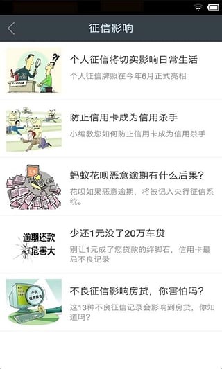 在线解读用户征信报告,并指导用户消除信用卡逾期,教您提升个人信用值的小窍门。