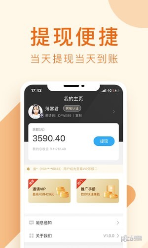 app是一款生活服务软件,app为用户提供违章代缴、征信查询、缴话费等便捷服务,同时app还有分享赚钱等特色功能,快来app体验吧。