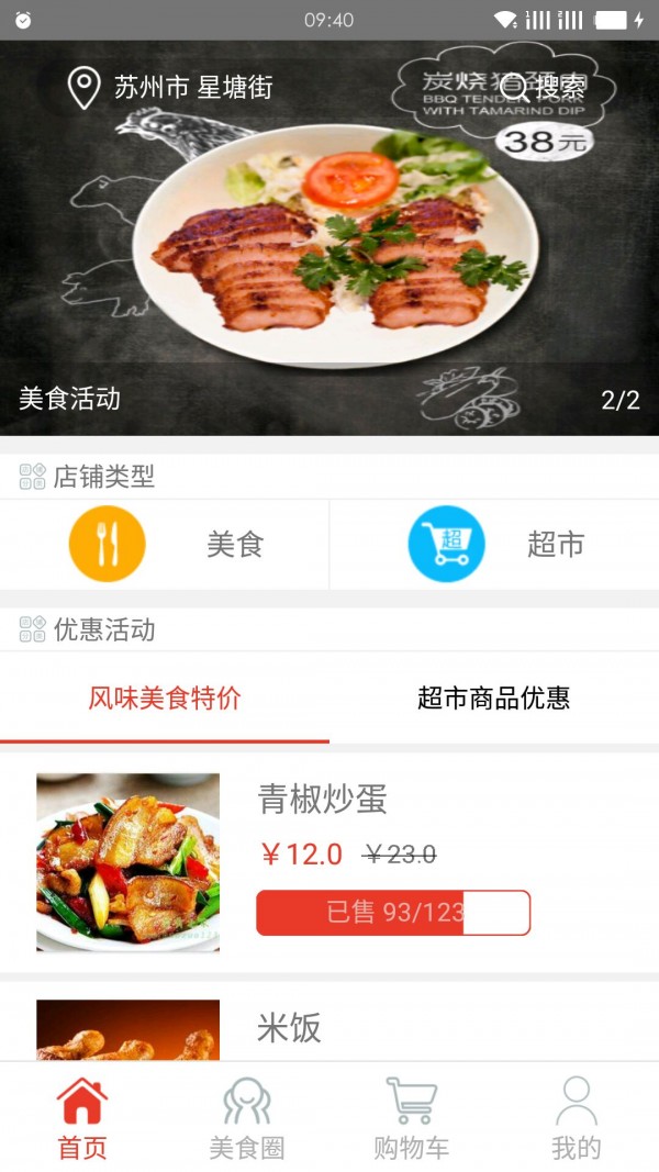 Lets购APP只需用户提前下单,预定好领取时间,到店后即可领取,节省了用户大量的时间。我们针对美食和超市这两种商店类型进行设计,主要功能包括打折促销活动、支持商家和商品搜索、附近商家展示、加入购物车、订单支付、美食圈分享等,满足用户的购物体验。