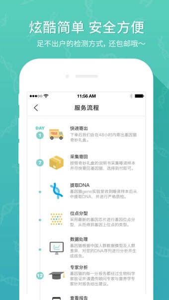 2,摩擦摩擦15下:足不出户的基因采集方式。来回顺丰快递包邮,简单便捷的口腔“刷牙”刮取。
