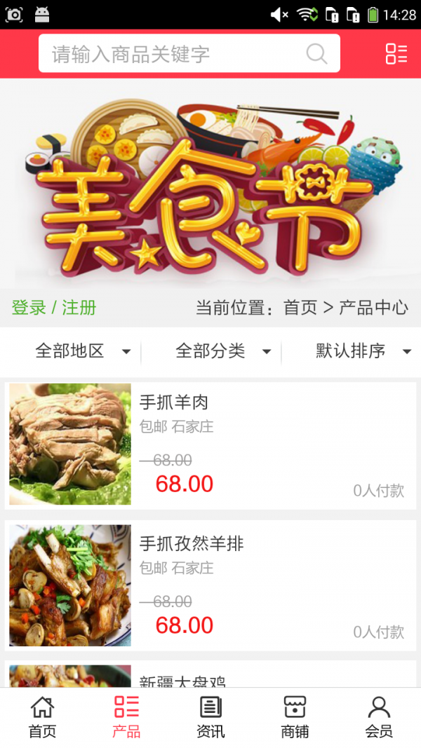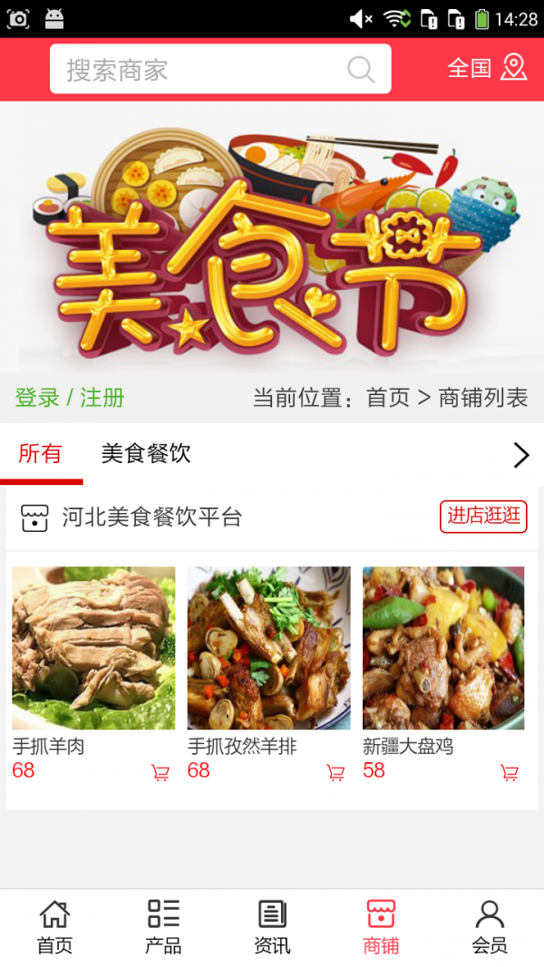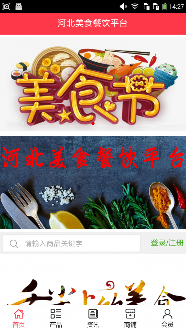 河北美食餐饮平台app不仅具备购物、查询订单、搜索商品、行业资讯和产品评价等常用功能,而且还实现了手机版特有的会员注册登录、广告位、招商开店等功能。
