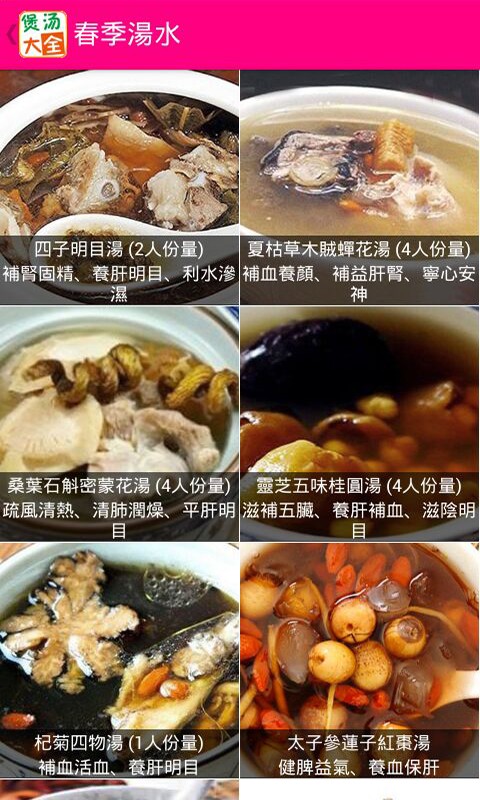 煲汤大全食谱app是一款食谱类的软件,通过煲汤大全食谱app你可以方便的学习各种煲汤方法。