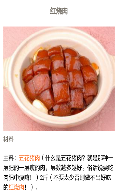 红烧肉食谱做法大全app是一款菜谱类的软件,通过红烧肉食谱做法大全app你可以了解到更多红烧肉食谱做法。