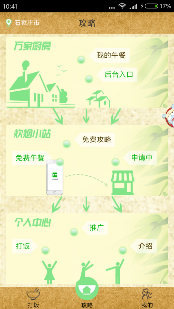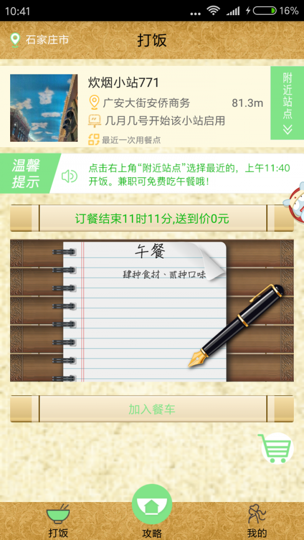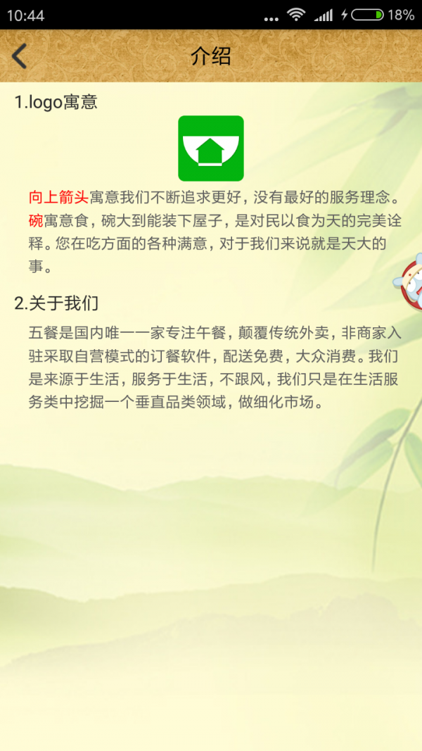 五餐是国内唯一一家专注午餐,颠覆传统外卖,非商家入驻采取自营模式的订餐软件,配送免费,大众消费。我们是来源于生活,服务于生活,不跟风,我们只是在生活服务类中挖掘一个垂直品类领域,做细化市场。